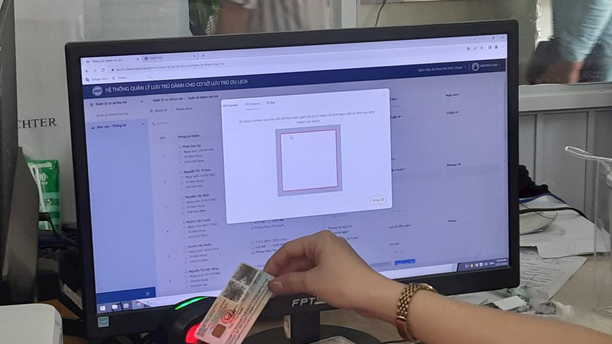 Ảnh: Cơ sở lưu trú quét thẻ Căn cước để thực hiện thông báo lưu trú qua ASM.