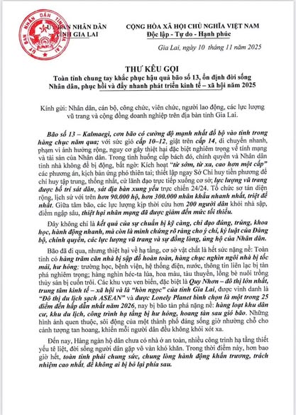 Đây không chỉ là lời kêu gọi; đây là trách nhiệm trước Nhân dân và mệnh lệnh hành động. Tôi tin rằng, với truyền thống đoàn kết, ý chí kiên cường của con người Gia Lai – chúng ta sẽ đứng dậy mạnh mẽ hơn, đưa quê hương phát triển bền vững, giàu đẹp hơn.